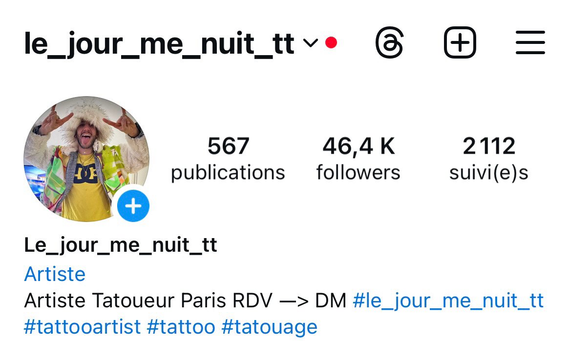 Artiste tatoueur région parisienne. Le jour me nuit tattoo, passionné depuis toujours par l’art, le streetwear, le streetart, et le graffiti. Je réalise tout style de tatouage sauf de l’hyper réalisme. Je favorise le feeling et je mets toute ma passion dans mes rdv